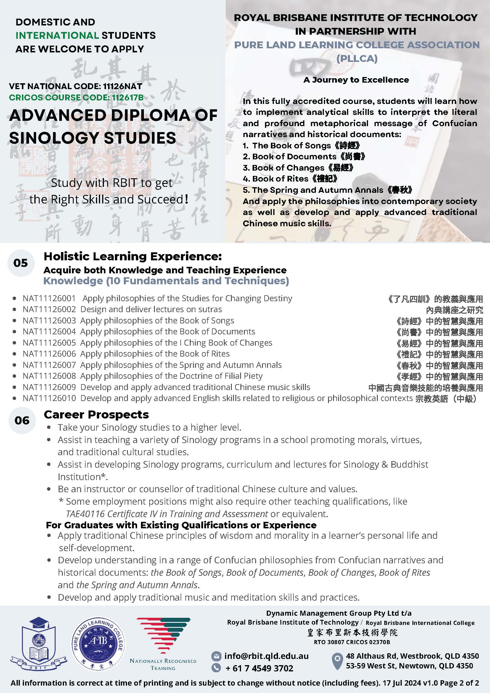 Advanced Diploma of Sinology Studies 漢學高級專科文憑(六級) |