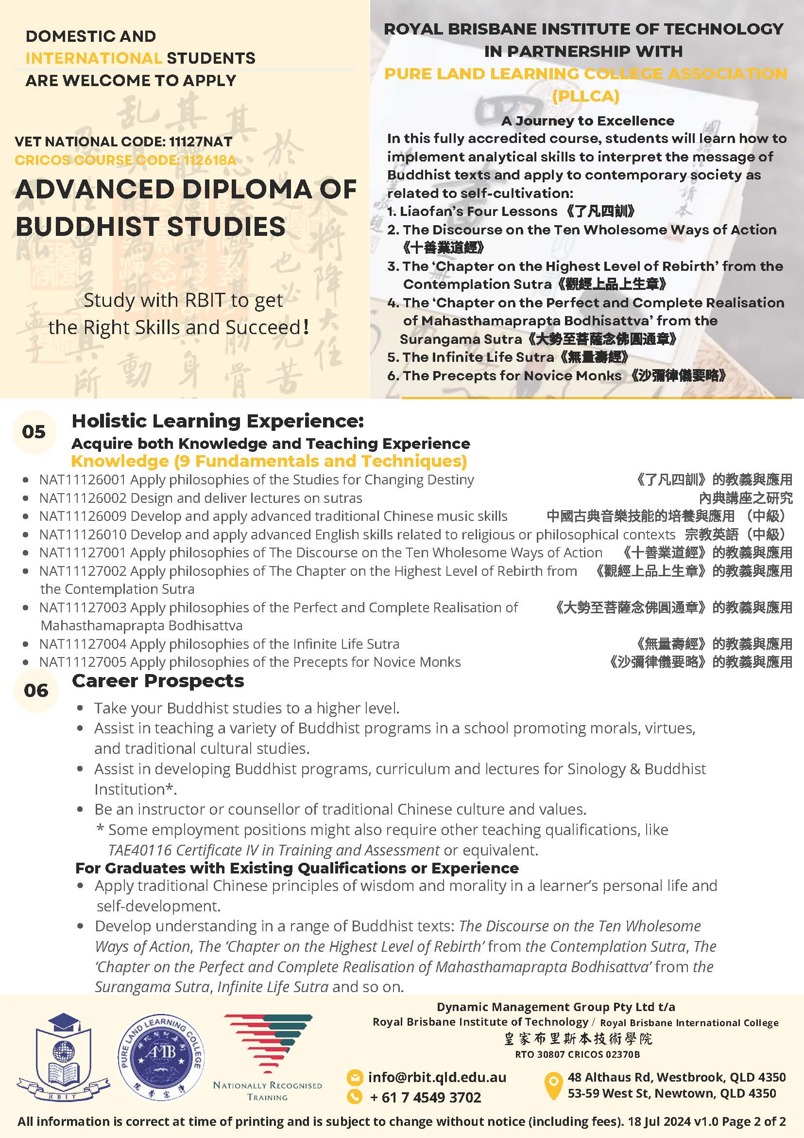 Advanced Diploma of Buddhist Studies 佛學高級專科文憑(六級) |