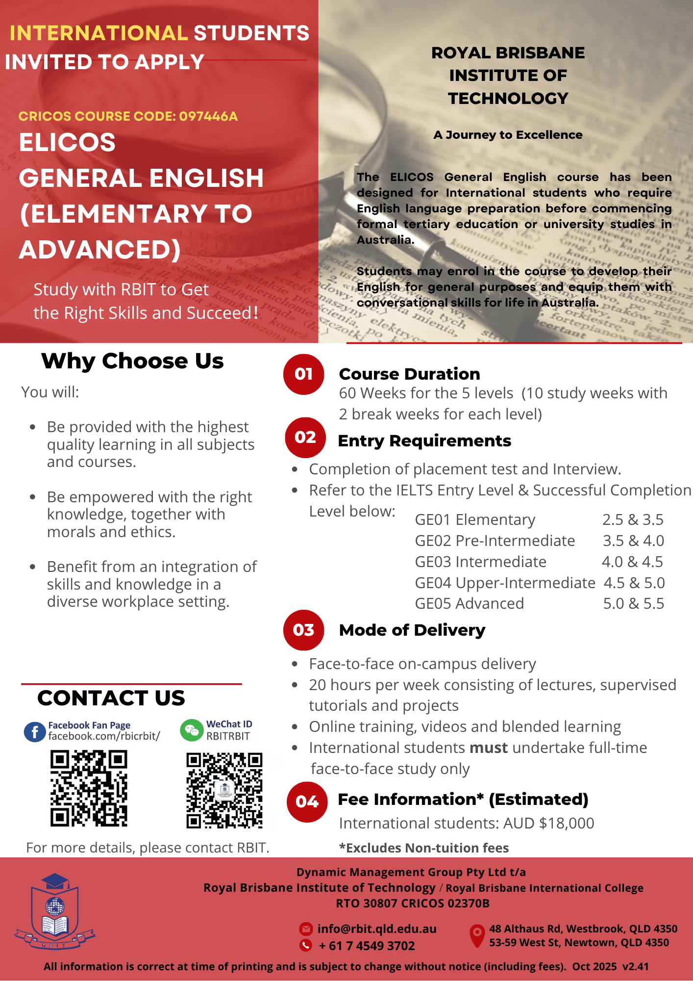 | CRICOS Course Code 聯邦政府招收海外學生院校及課程註冊登記(CRICOS)代碼 |