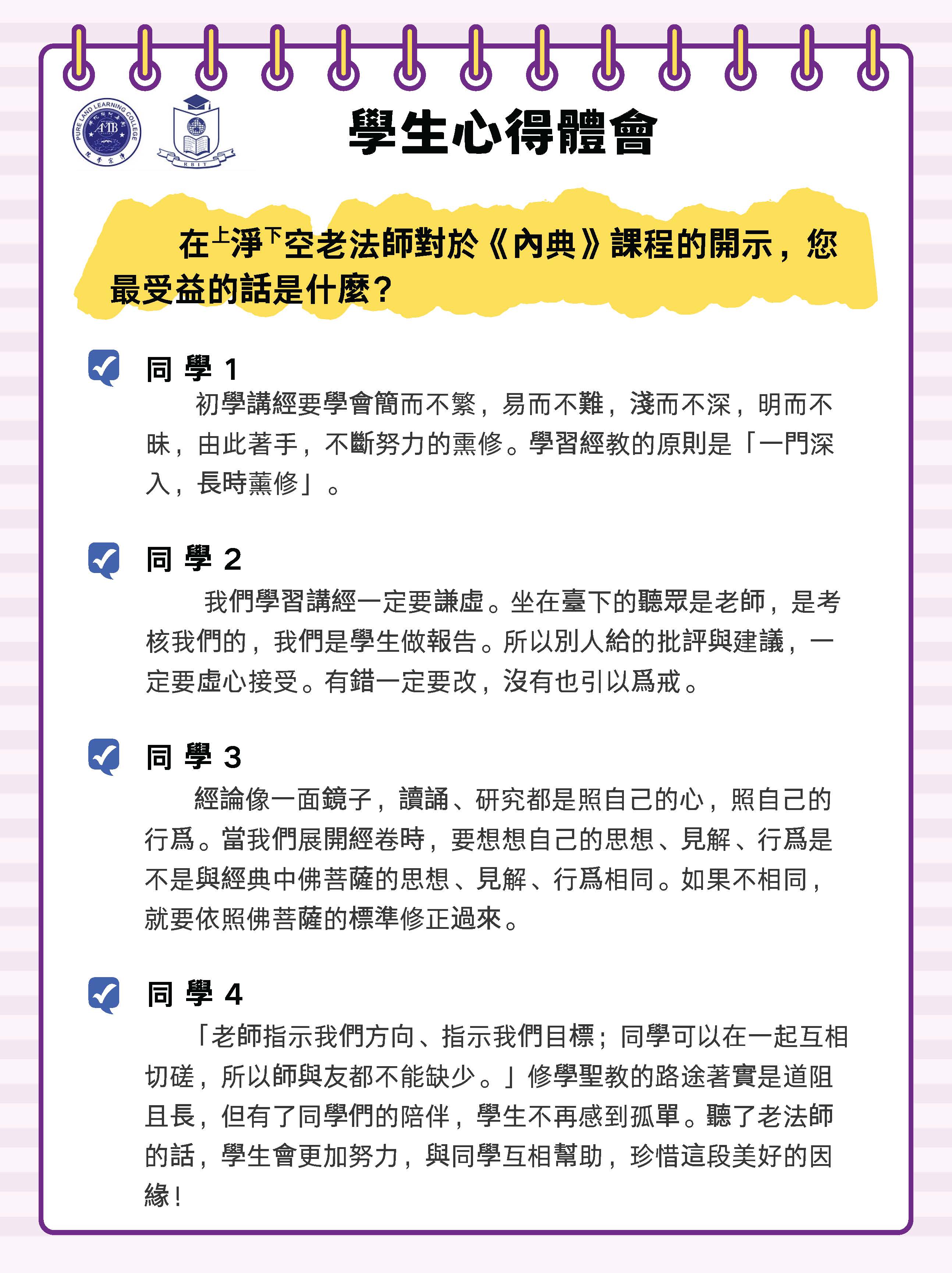 學生感言 / Student Testimonials